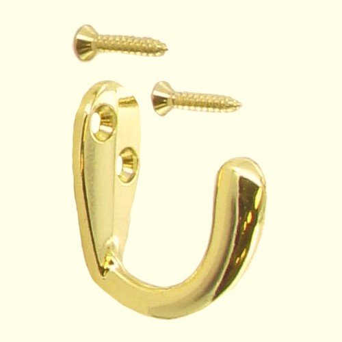 The Stanley Hardware single prong robe hook is especially useful for bedroom, bathroom and kitchen use and adds a decorative appearance to any room. With an overall height of 1-13/16 inches, this single prong hook is made of durable zinc die-cast steel, comes in a bright brass finish, and includes all screws needed for easy mounting.